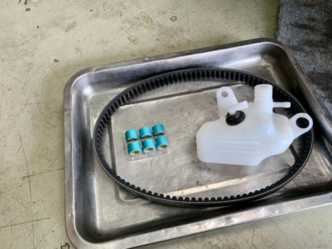 ベルトは1mm以上細くなりウェイトローラーは偏摩耗のため交換。