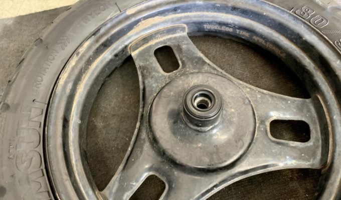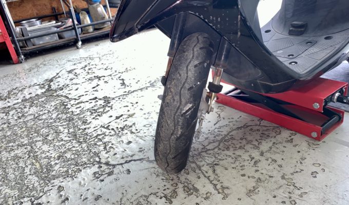 - フロントタイヤ交換(エアバルブ交換込み、オイルシール交換含む)