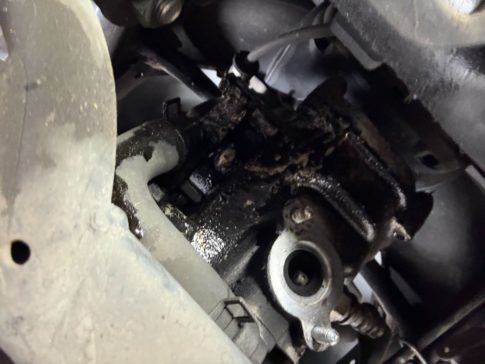 ただし、左フロントフォーク下部には衝突痕があり、オイル漏れを確認しました。