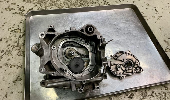 メーカー在庫で部品の供給はありましたが、クランクケース単体で約23万円と非常に高額でした。