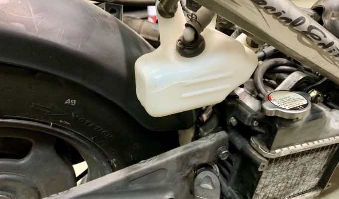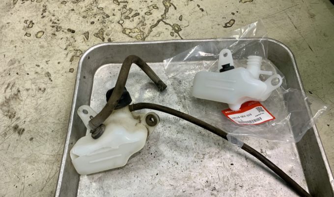 点検を進めると、冷却水のリザーブタンクが空の状態で、オイルゲージにもオイルが付いていませんでした。