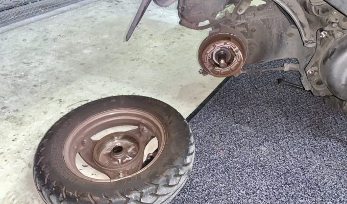 スズキ ヴェクスター150(CG42A)のリアタイヤがロックして動かなくなったとのことで、
