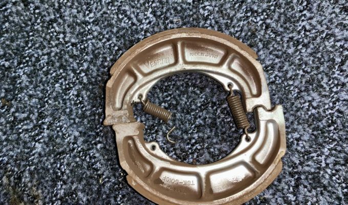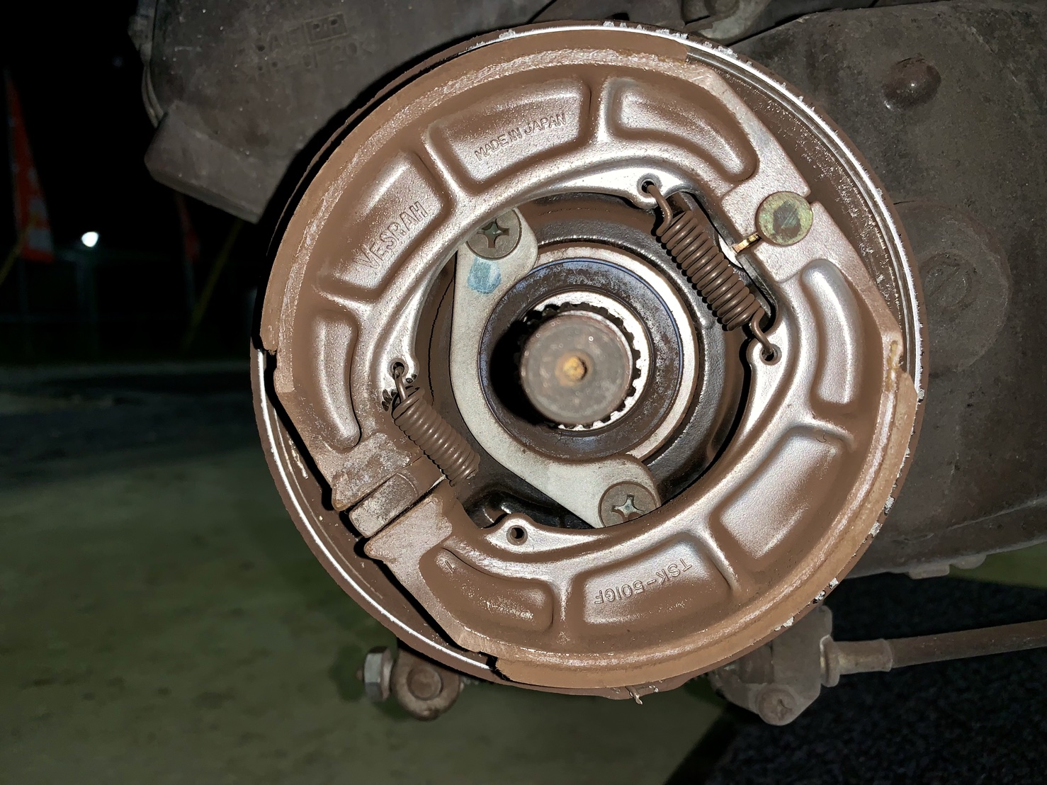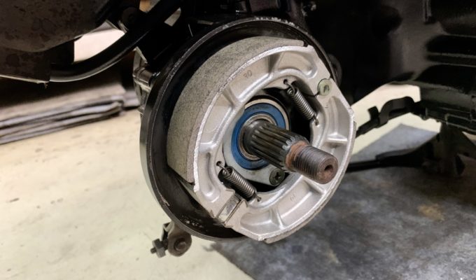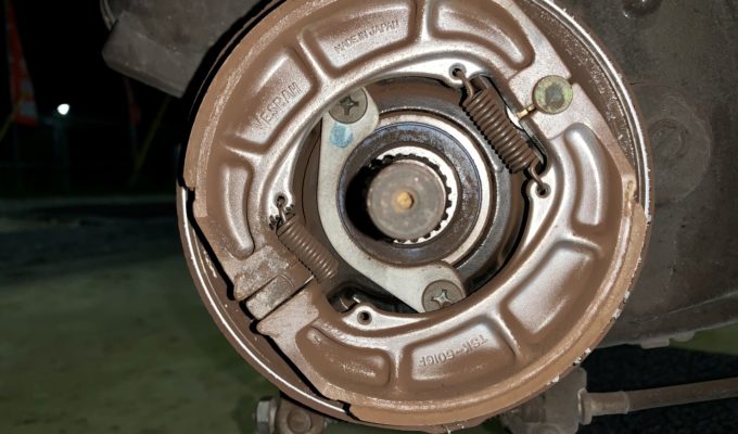 分解清掃とグリスアップを行い、リアブレーキシューを新品に交換。