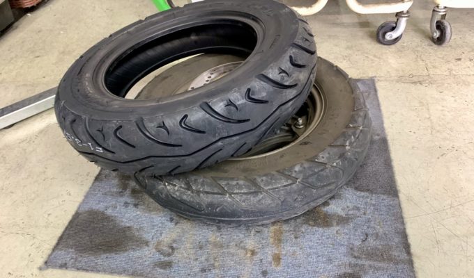 また、点検の際にフロントタイヤの摩耗とフロントブレーキパッドの減りも確認できたため、