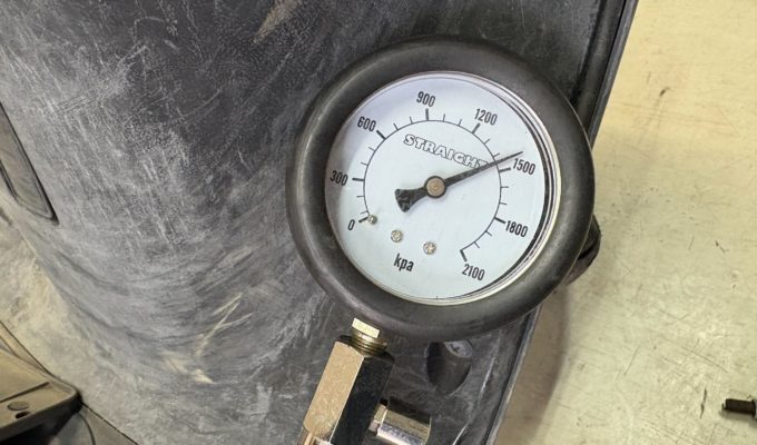 エンジンコンディションを確認するため圧縮圧力を測定したところ、1450kPaと正常値。