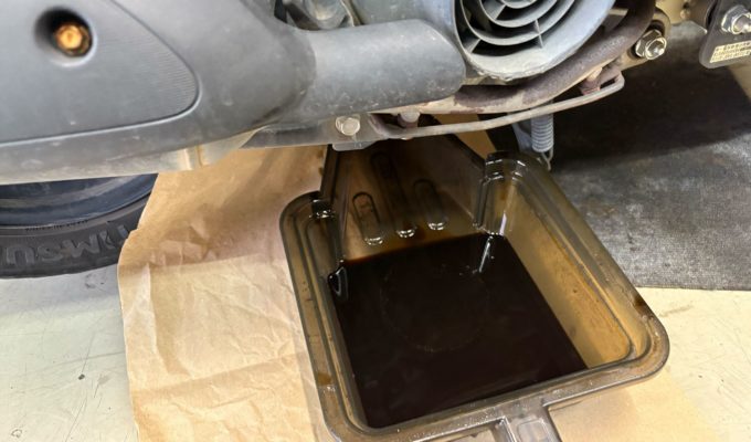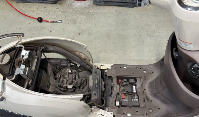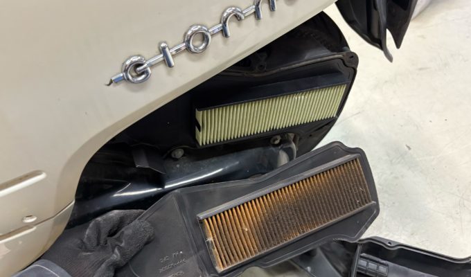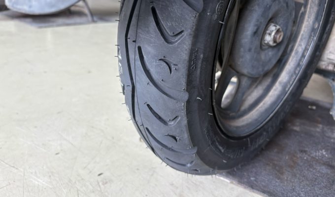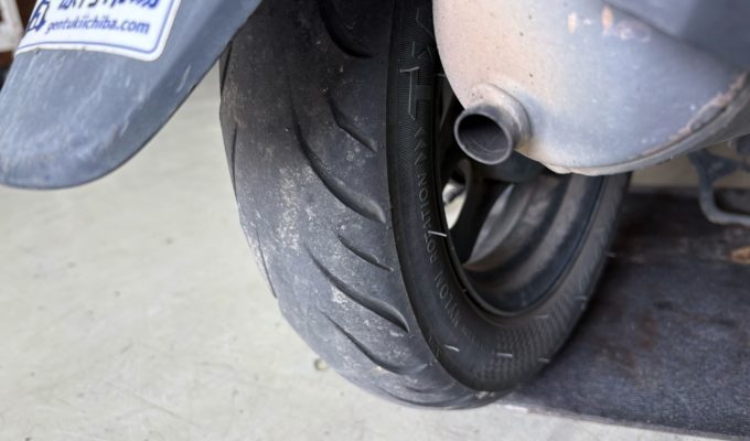 あわせて不完全燃焼を抑えるため、プラグ・エアフィルターの交換、さらに摩耗していたリアタイヤ交換も実施しました。