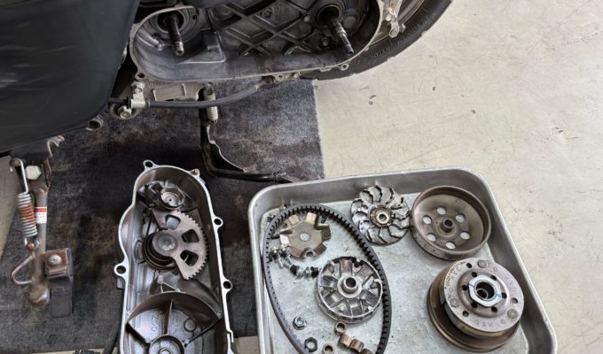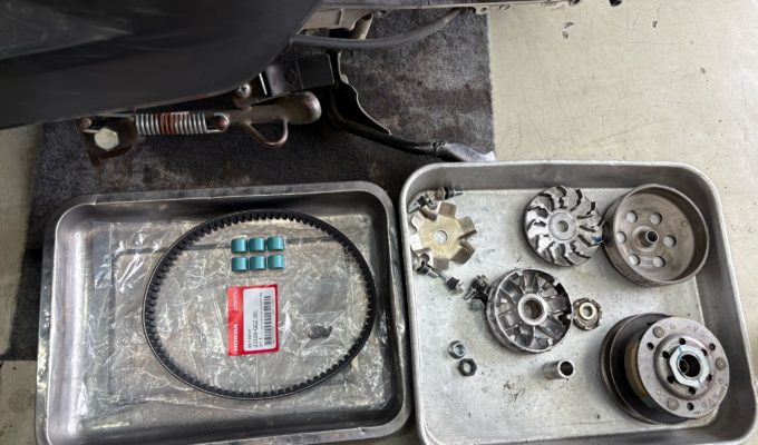 - 駆動系整備(ベルト・ウエイトローラー交換/クラッチ分解清掃・グリスアップ)