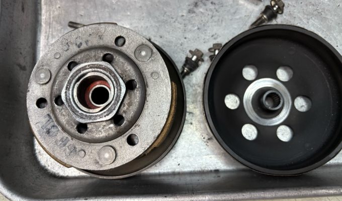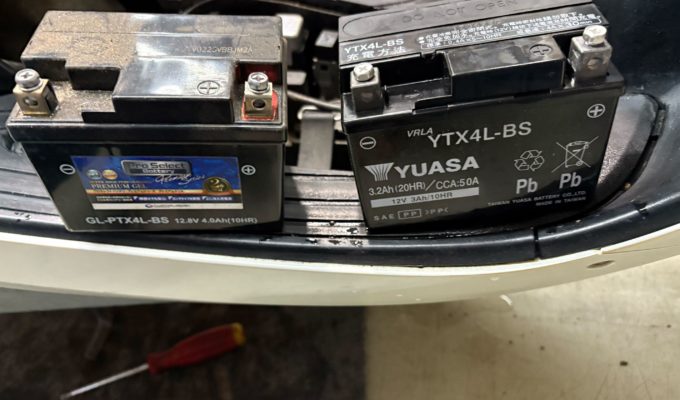 バッテリーが弱くセルが回らず、キックレバーの感触も軽い状態でした。