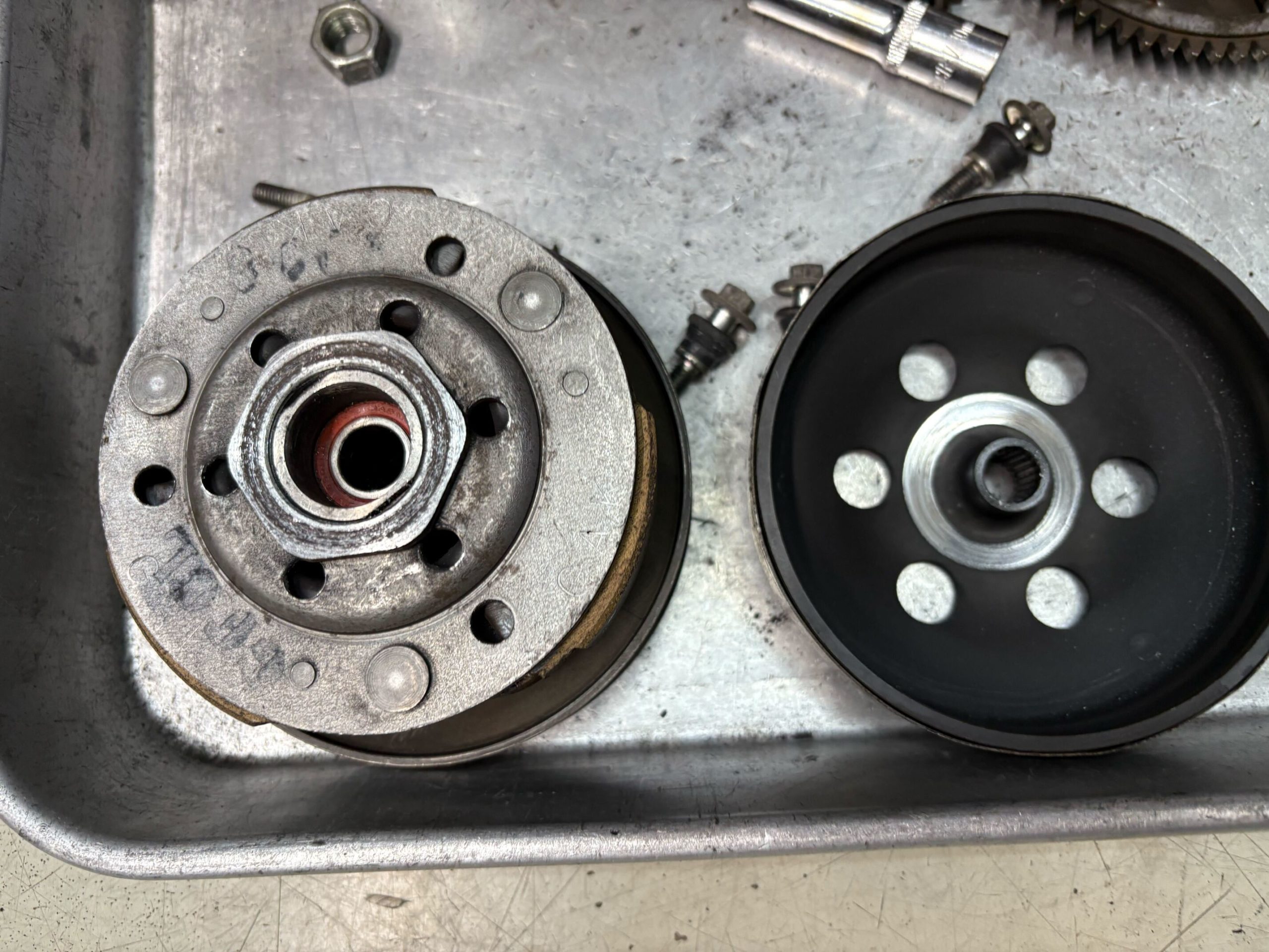 ナットの緩みによりネジ山が損傷している可能性もあるため、安全を最優先にしてクラッチ一式を中古良品に交換しました。