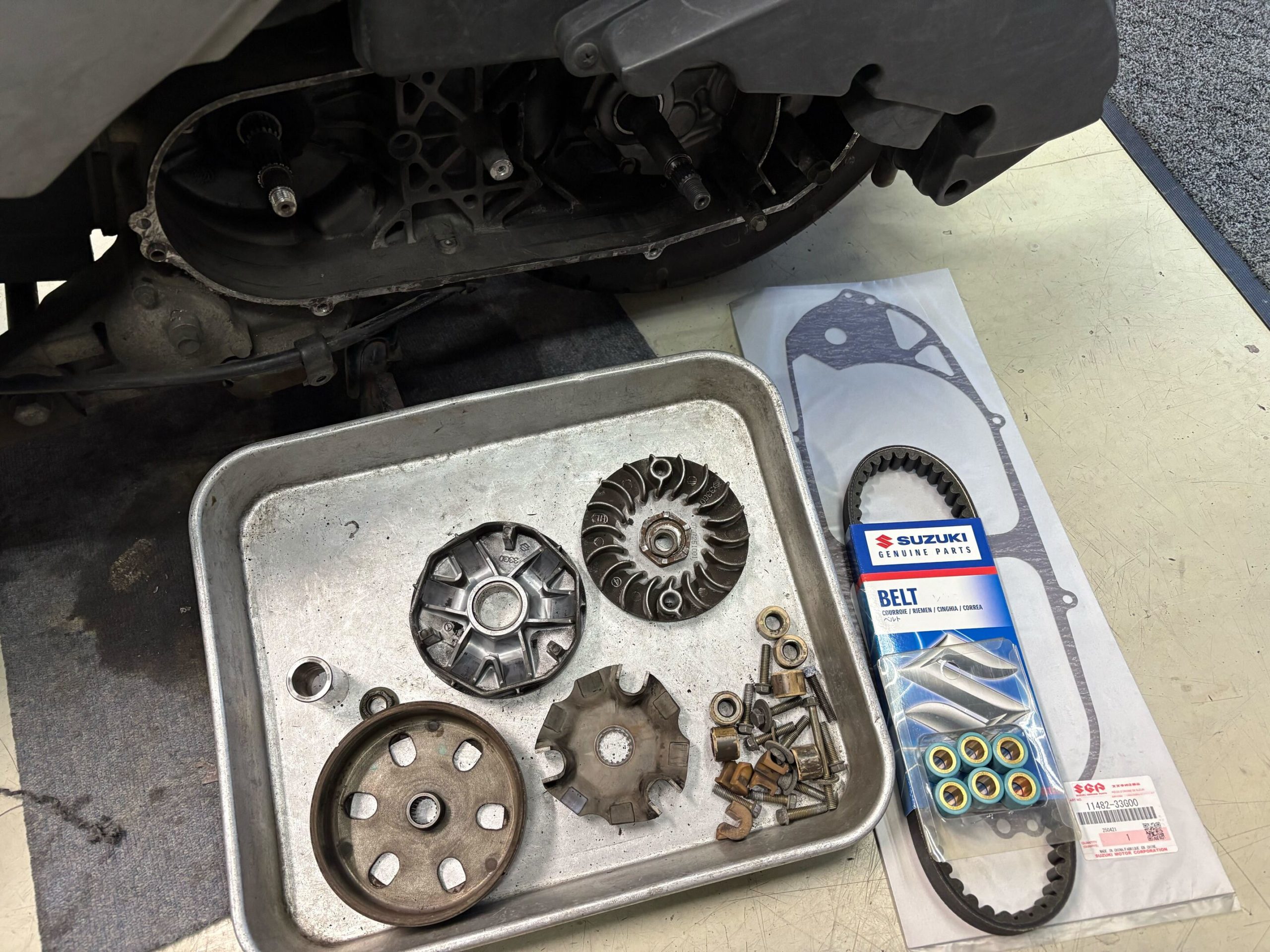 修理受付時間は11:00〜19:00です。GoogleMapで”原付市場”と検索して中古車展示場(藤沢市宮原3610-1)を選んでください。カーナビですと辿り着けないようなので、GoogleMapをおすすめします。