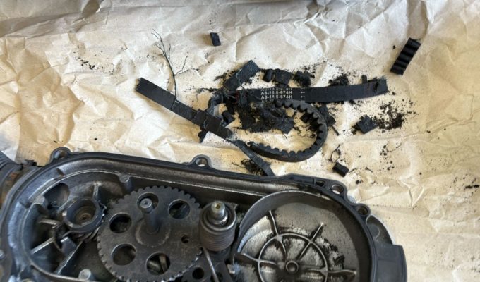 駆動系を分解して点検したところ、原因はドライブベルト切れでした。