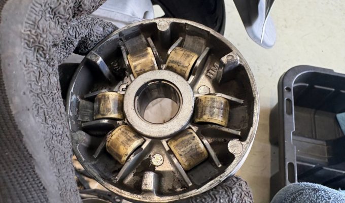 クラッチウエイトも摩耗が進んでおり、近いうちに滑りが発生する可能性が高かったため交換をおすすめしました。