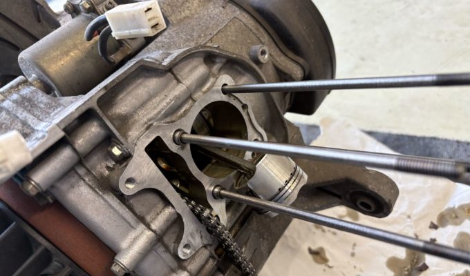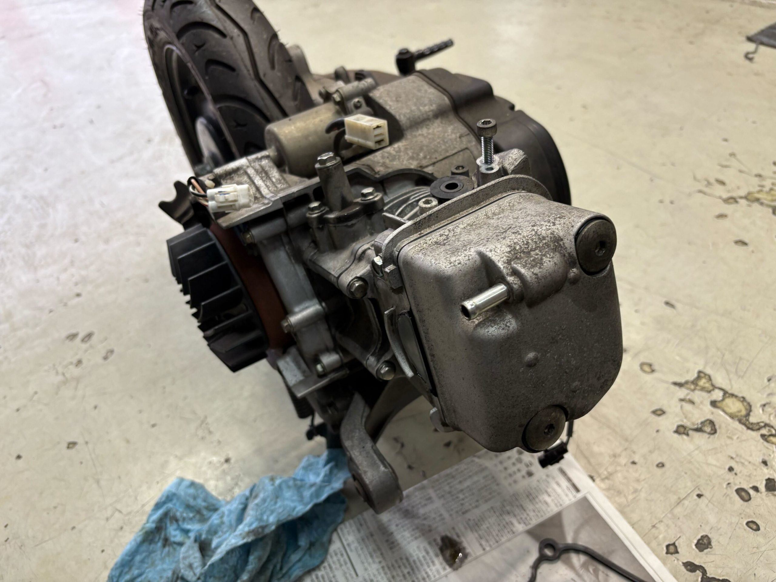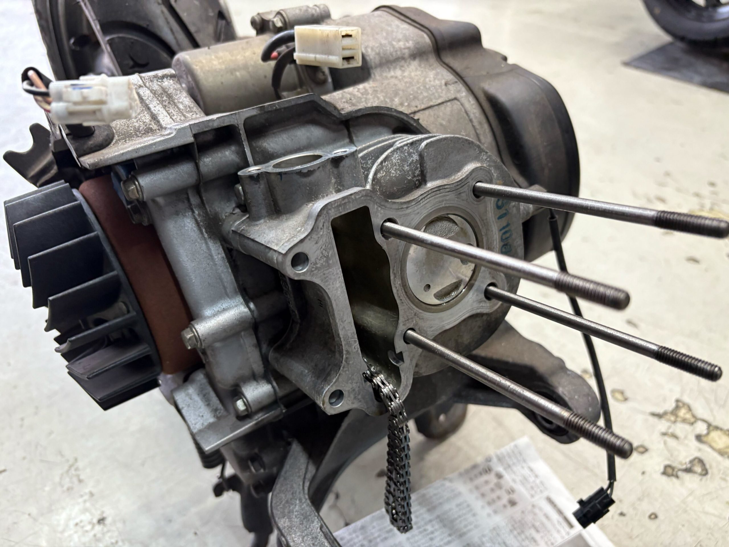 エンジンを車体から降ろし、シリンダーまで分解して点検しました。