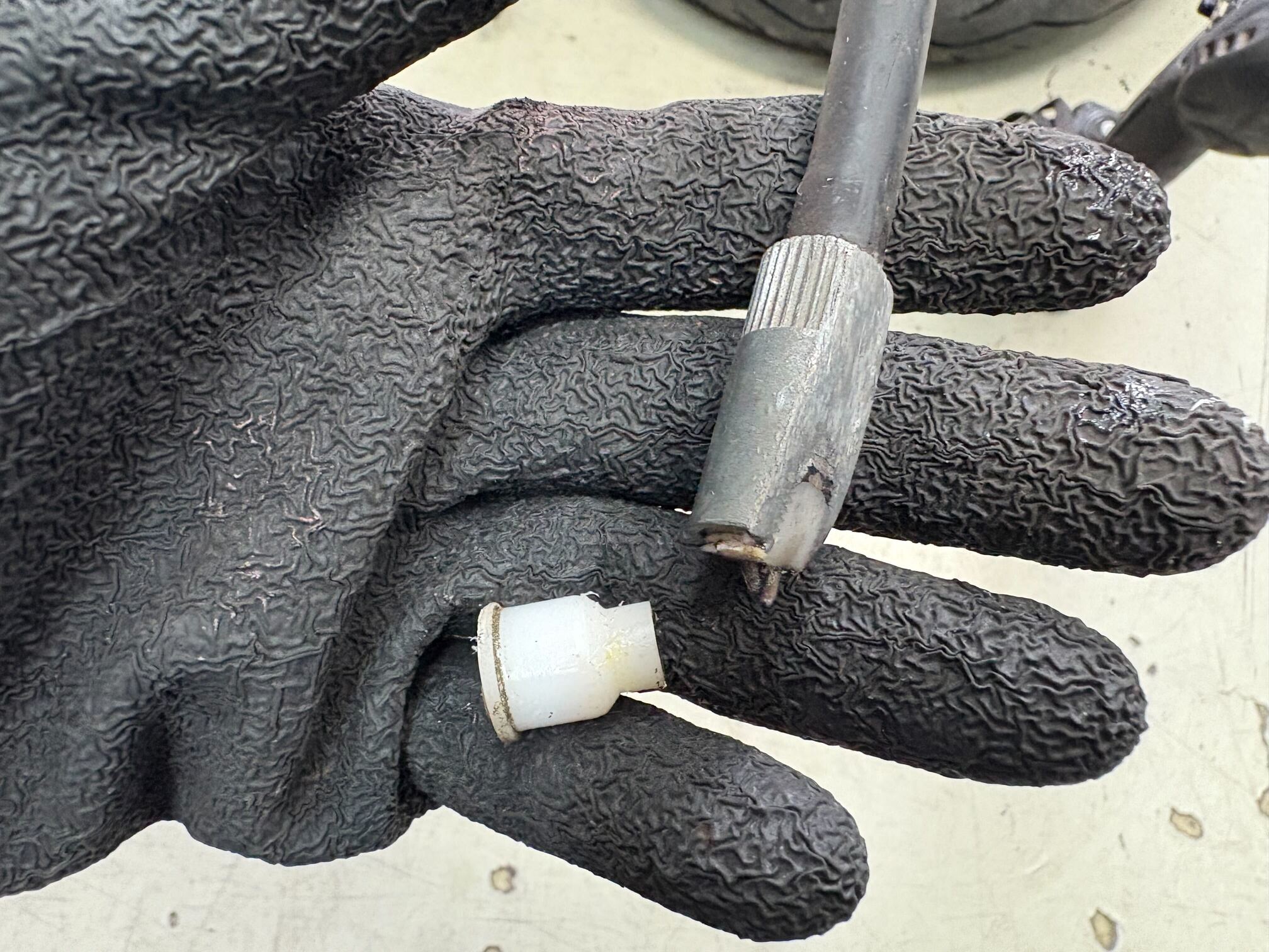 メーターケーブル先端のブッシュが折れて脱落していました。