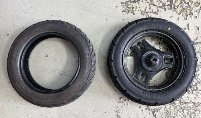 スズキ レッツⅡ(CA1PA)のリアタイヤがパンクしてしまい自走不可とのことで、