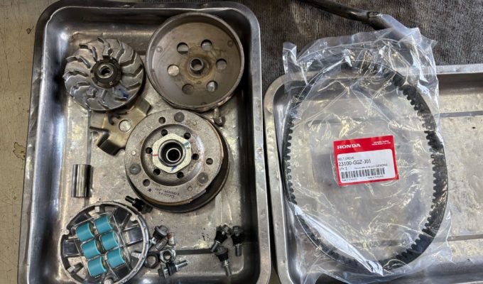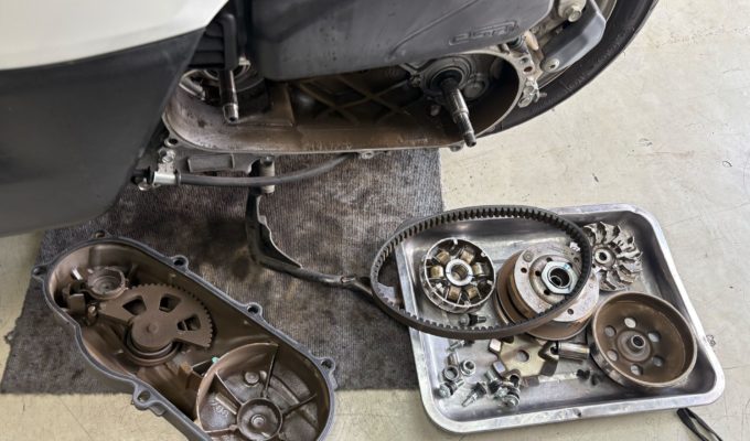 - 駆動系整備(ベルト交換、ウエイトローラー交換、スライドピース交換、クラッチ分解清掃・グリスアップ)