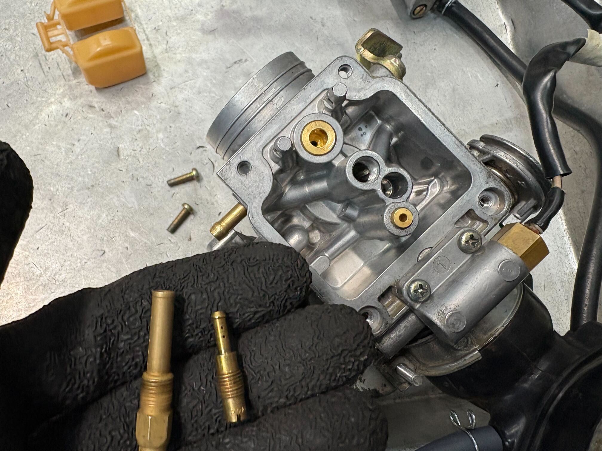 まずキャブレターを取り外し、フロート室を含めて分解点検を実施。