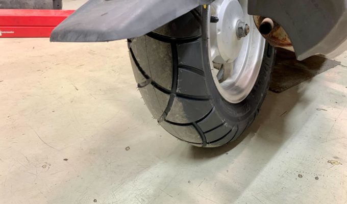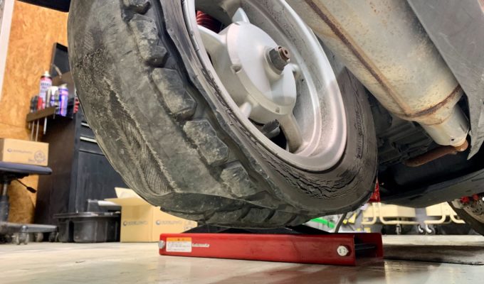 フロントタイヤも溝が少なく劣化が進んでおり、危険な状態でしたので、