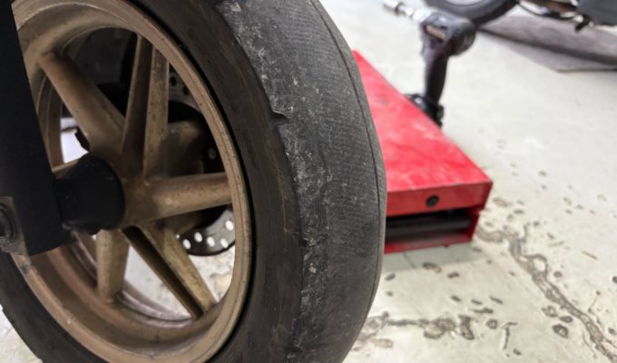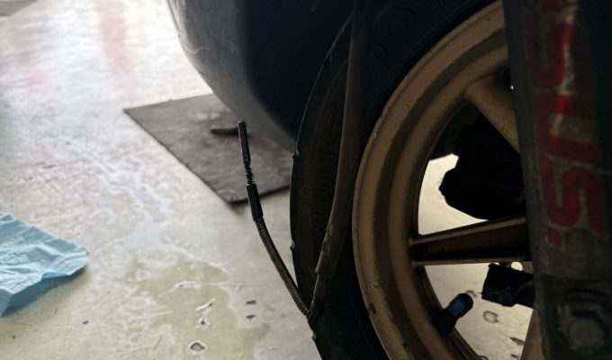 あわせてフロントタイヤも使用限界で、パンクの可能性が高かったため同時に修理を承りました。