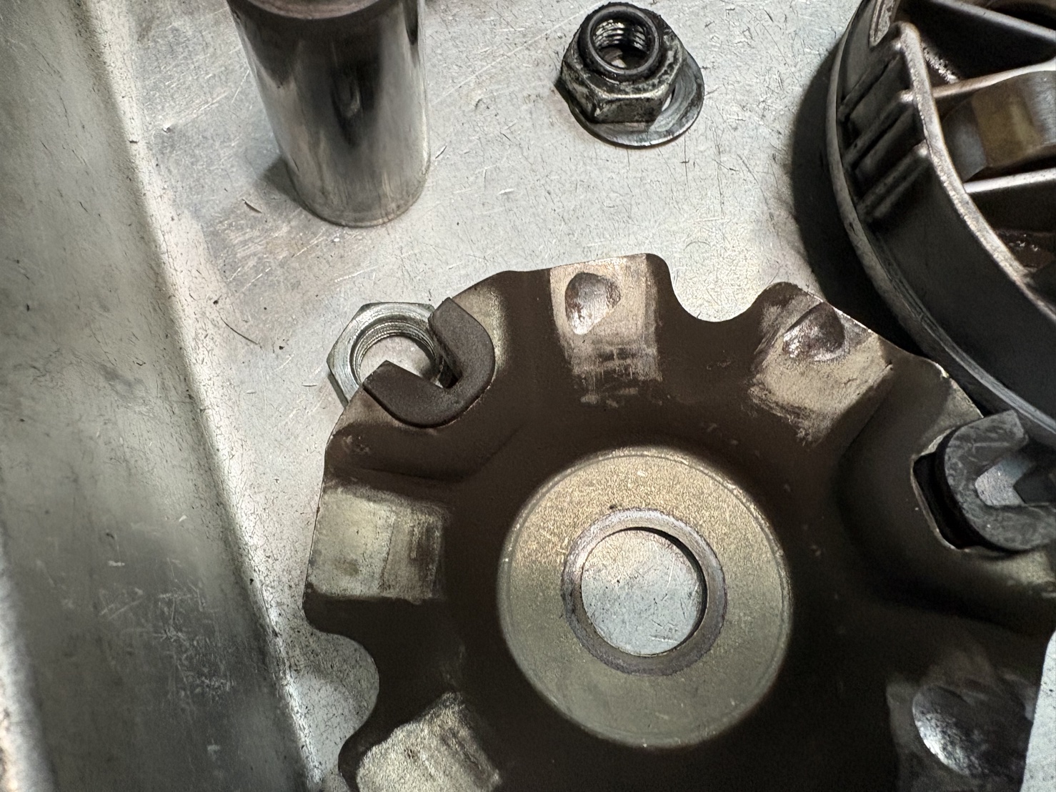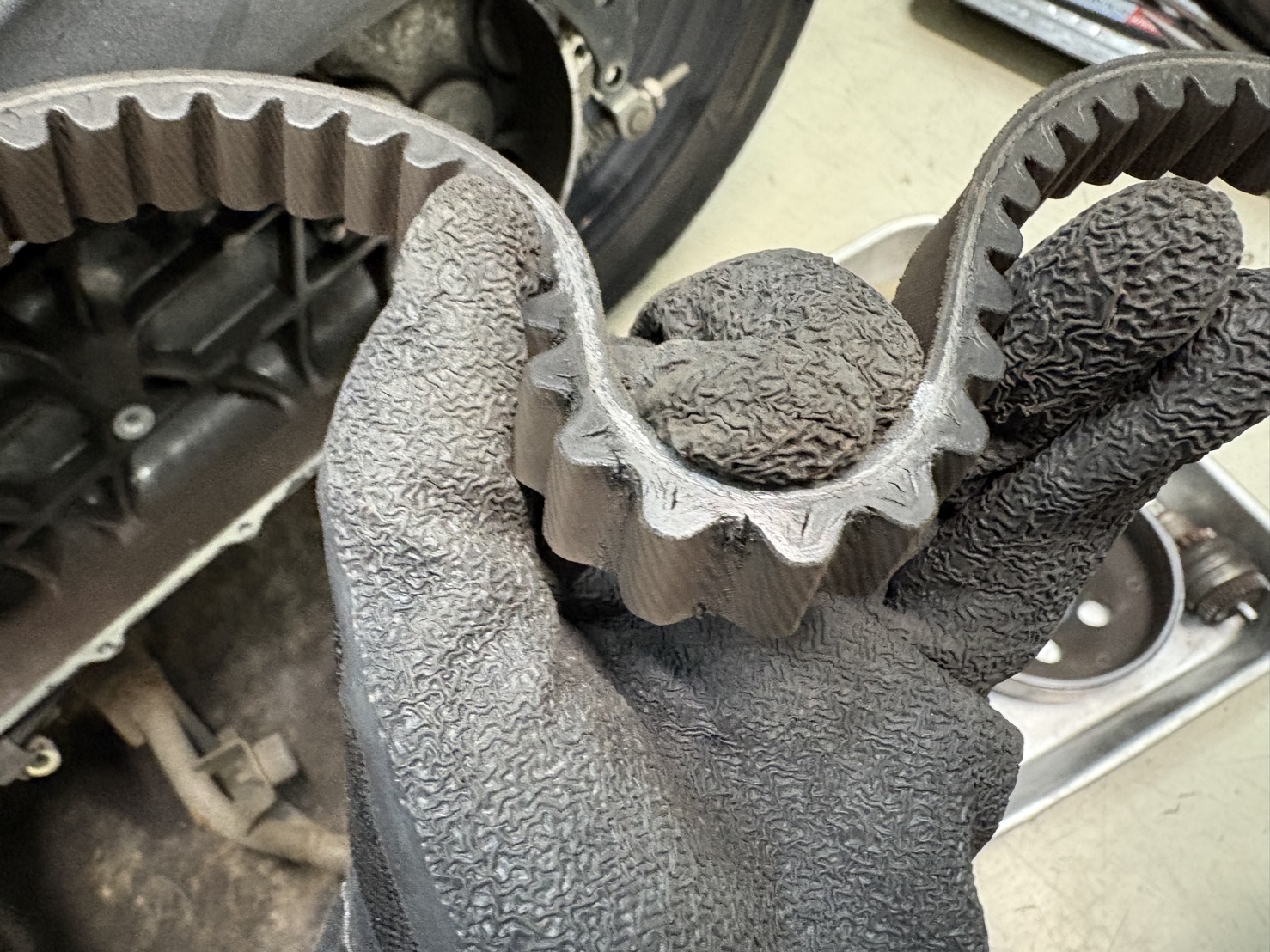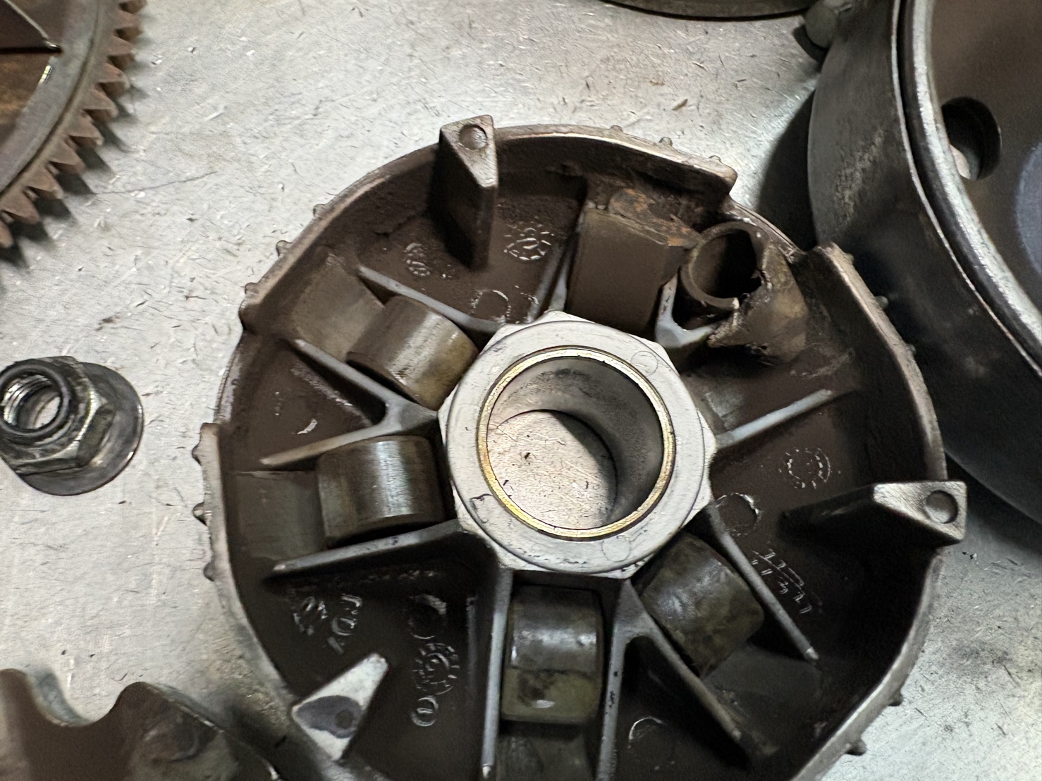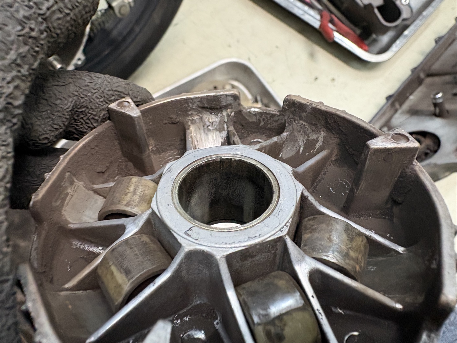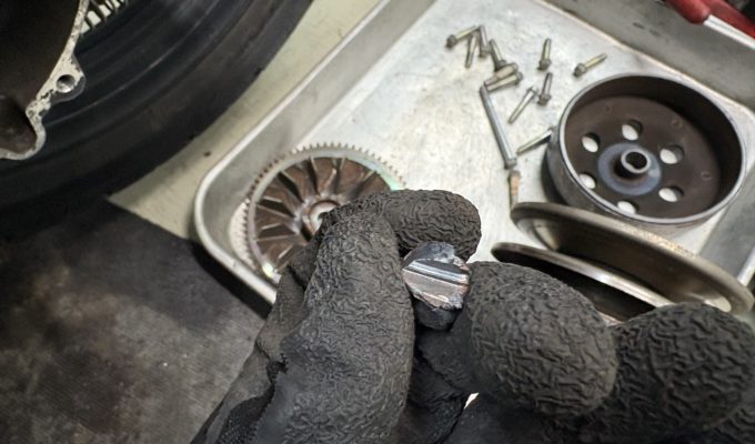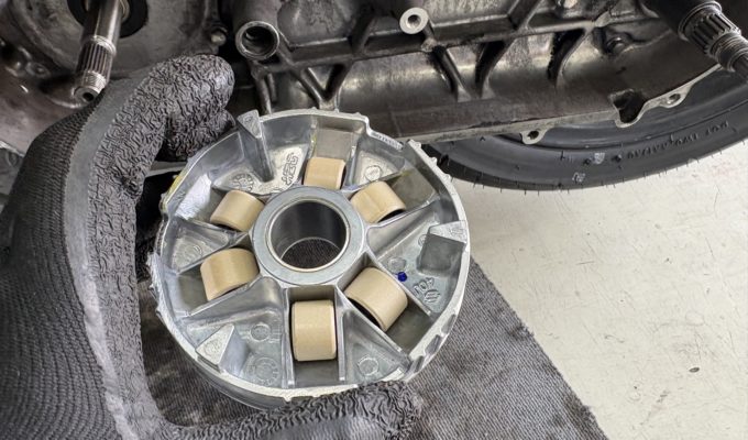 今回のトラブルは、割れたウエイトローラーがクラッチ内部に噛み込んだことによる、