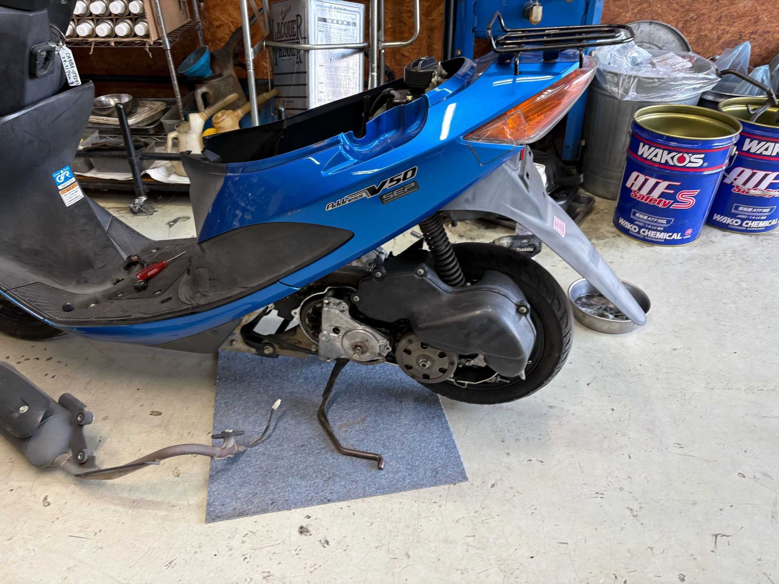 修理受付時間は10:00〜19:00です。GoogleMapで”原付市場”と検索して中古車展示場(藤沢市宮原3610-1)を選んでください。カーナビですと辿り着けないようなので、GoogleMapをおすすめします。