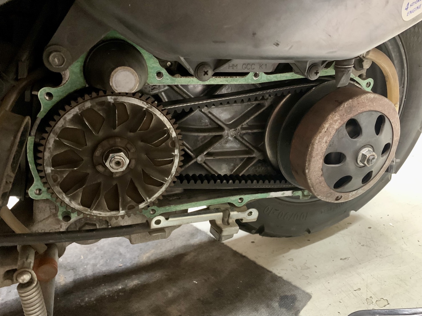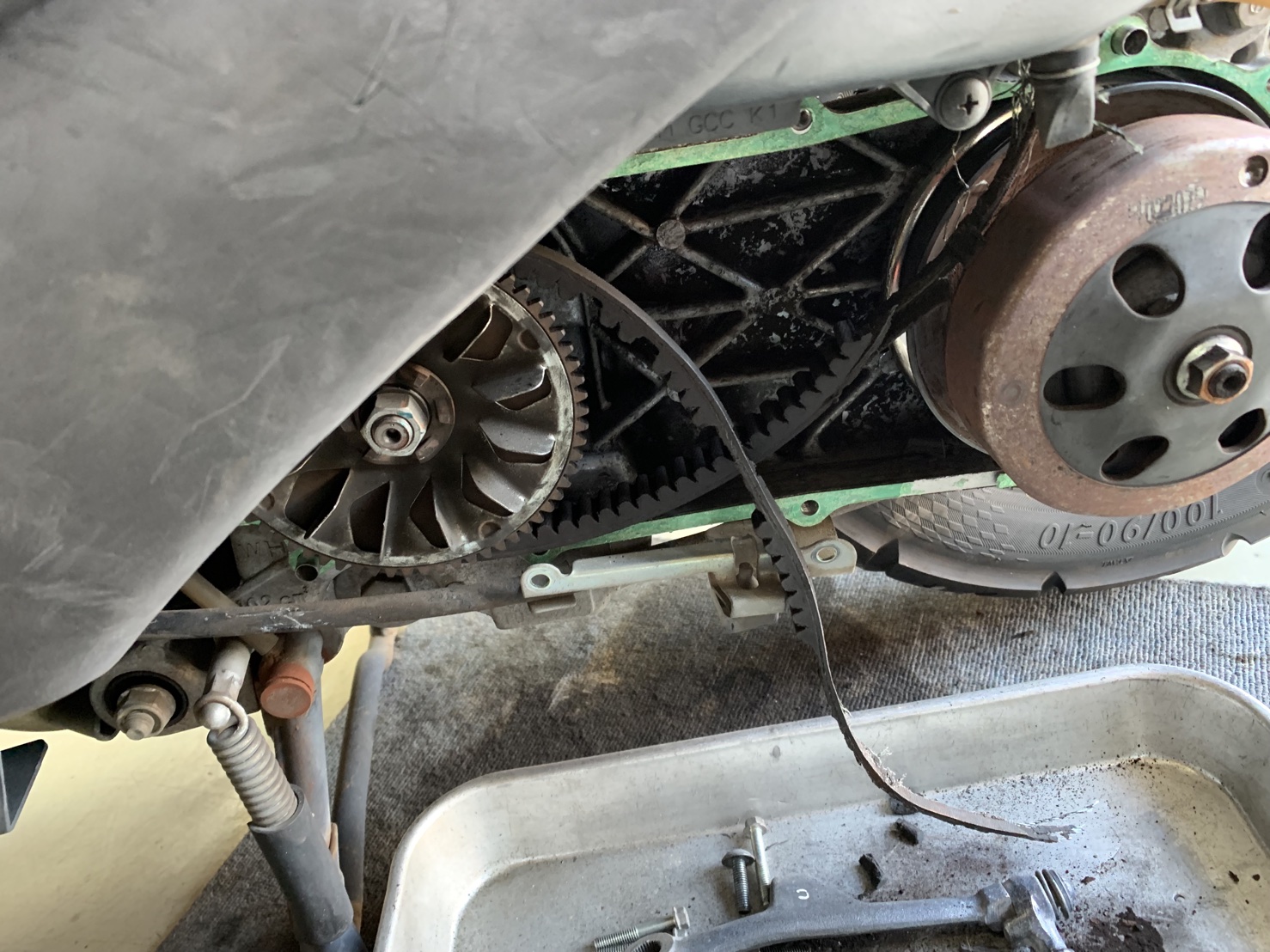 駆動系を開けて点検したところ、ドライブベルトは完全に切れていました。