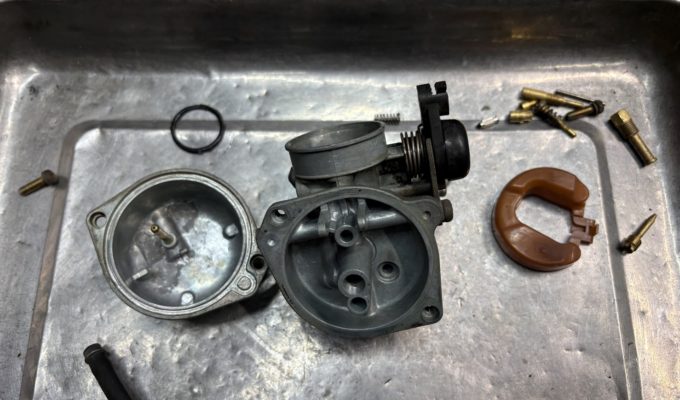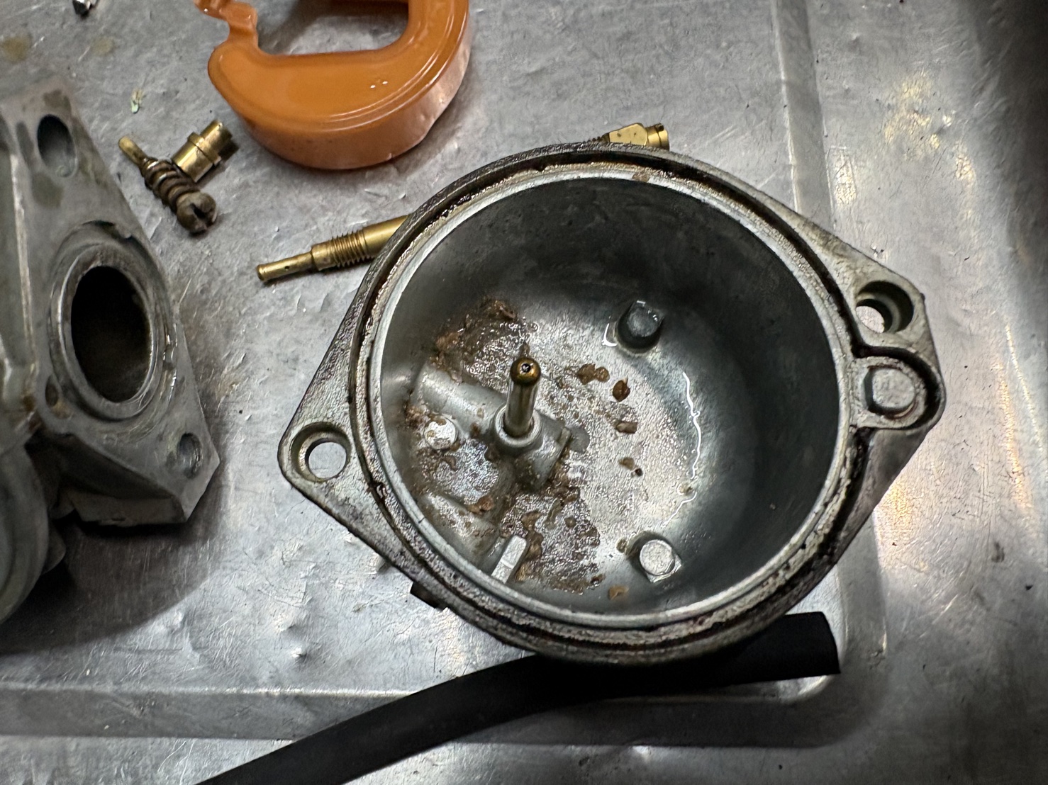 キャブレターを分解したところ、内部はかなり汚れている状態でした。