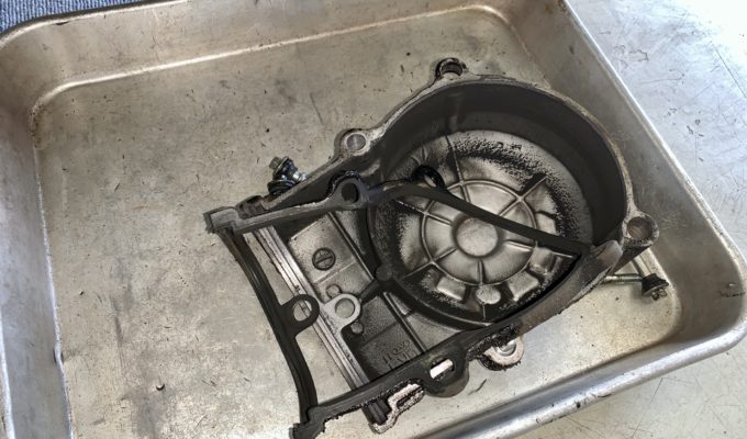 主にクランクケースカバー周辺と、エアクリーナー付近から漏れているとのことです。