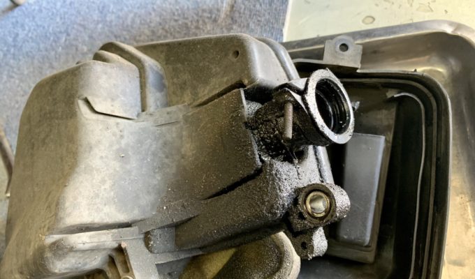 キャブレターおよびエアクリーナー接続部の緩みや劣化により、