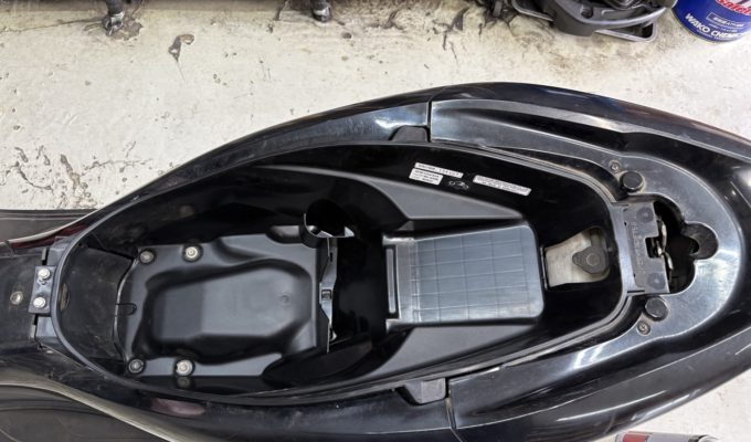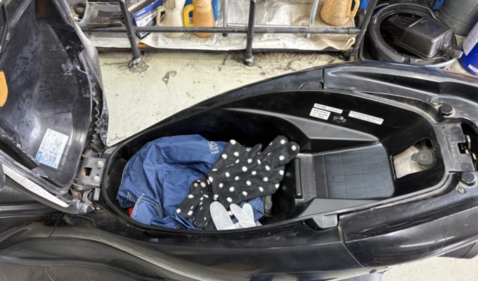 ホンダ PCX(JF28)ラゲッジボックス・リアタイヤ・オイル交換|メットインが割れた