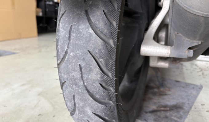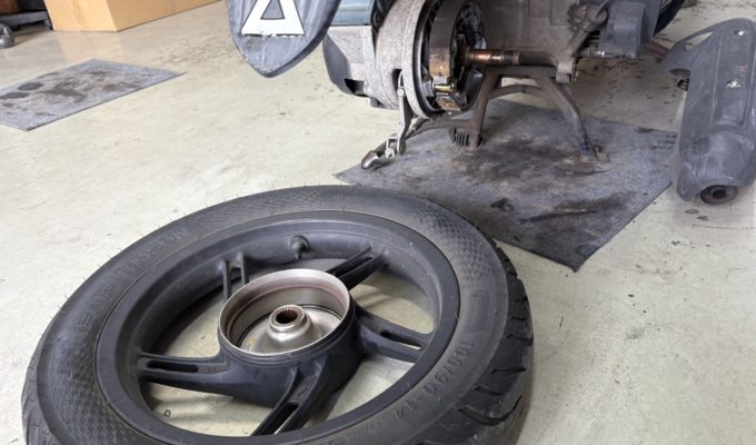 ラゲッジボックスは新品部品へ丸ごと交換。リアタイヤはエアバルブも劣化していたため同時に交換しました。オイル交換も済ませ、全ての作業が完了したことを確認してからご返却しました。