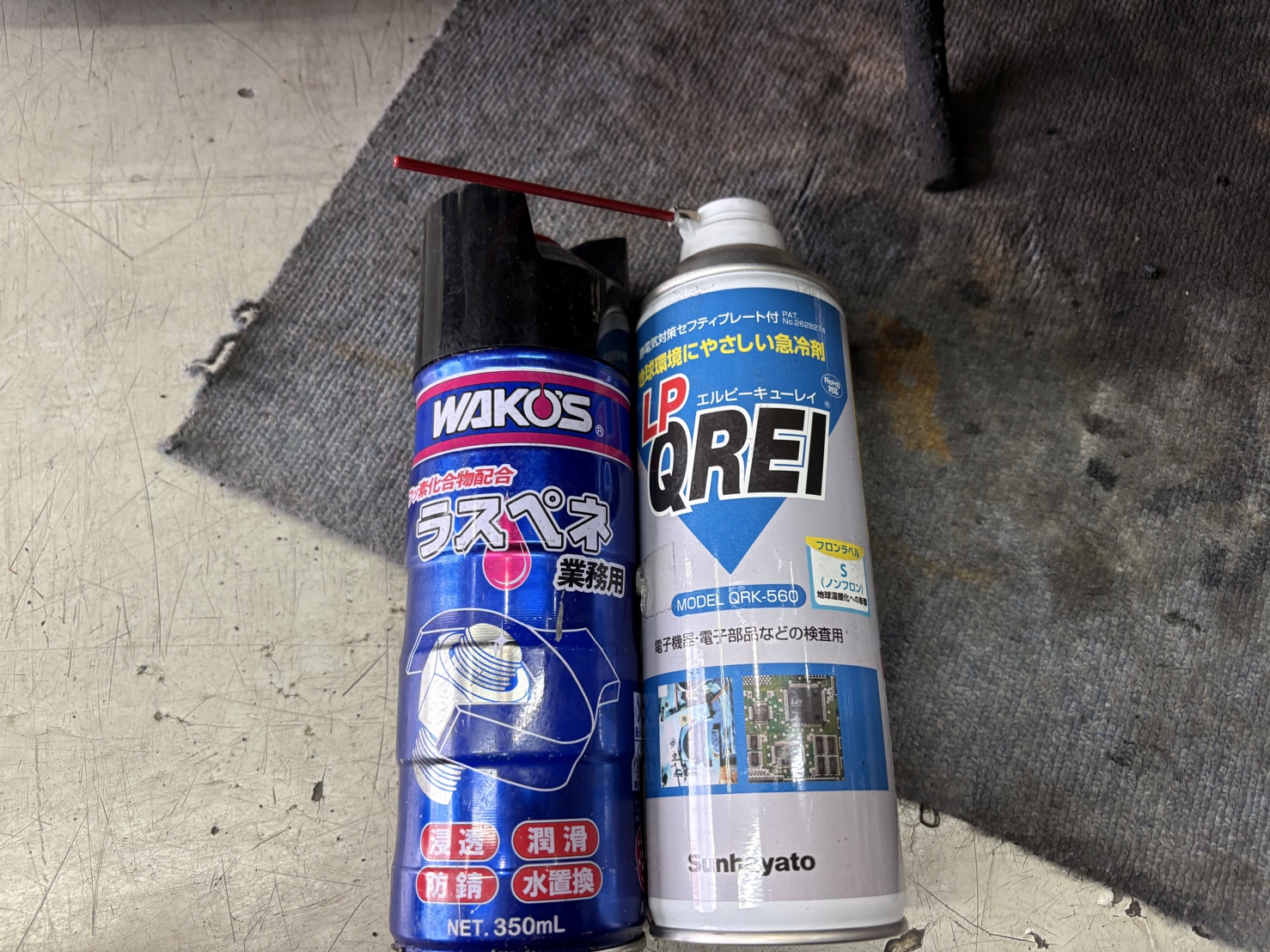 手順は「ラスペネ(浸透潤滑剤)を吹く → バーナーで炙る → 冷却スプレーで急冷」を繰り返し、ボルトと母材の熱膨張差を利用して固着を少しずつ緩めます。焦らず地道に作業を続けた結果、ボルトを折ることなく無事取り外すことができました。