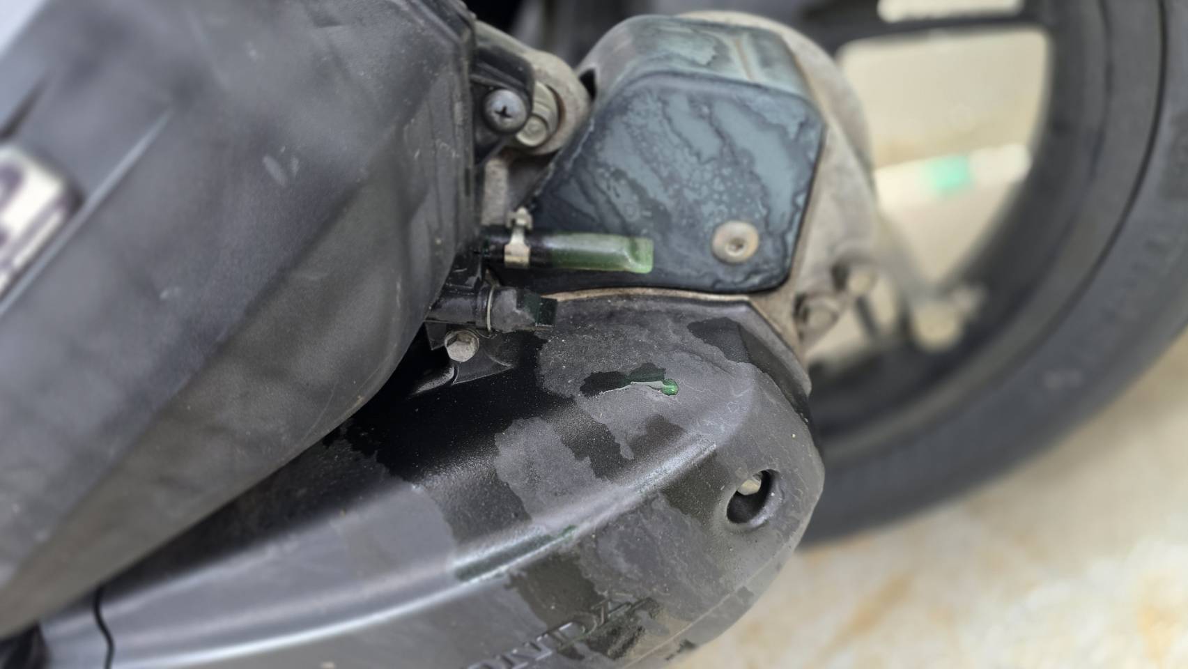 今回はリザーブタンクホースの亀裂による冷却水漏れでした。初代PCX(JF28)はリザーブタンクが車体上部に配置されている構造上、ホースやタンク本体が熱と振動の影響を受けやすく、経年劣化による冷却水漏れが起きやすい傾向があります。